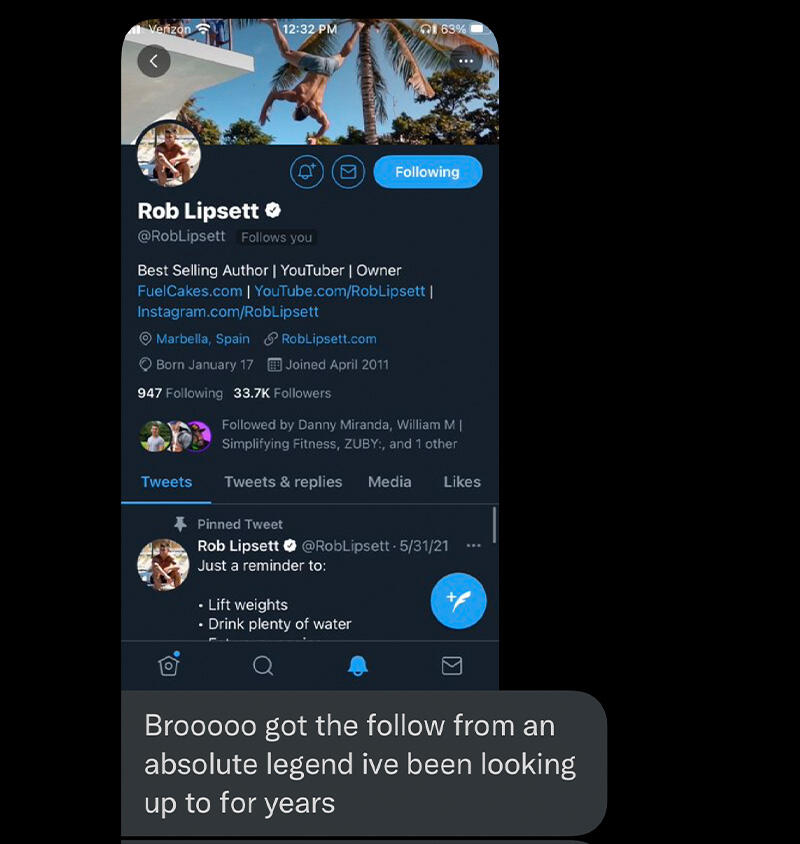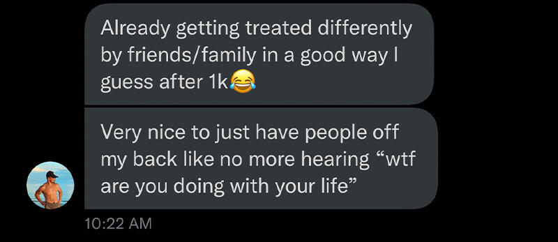 And just to show you some numbers that aren't super insane...Alex went from 0 to 1,000 followers on Twitter in 1 month: