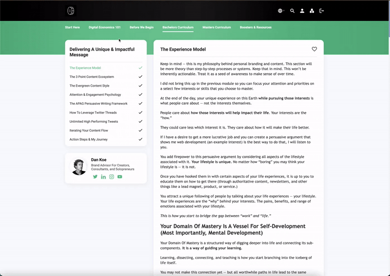 As simple as that.You will learn everything you need to start, grow, and productize yourself on the internet.You have everything you need. You just need a system to help put it out into the world.